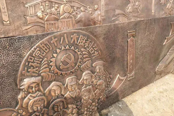 玻璃钢浮雕的核心优势在于其“可塑性”与“仿真性”的完美结合。它能够以极低的成本和极短的工期,精准复刻出从浅浮雕到高浮雕,乃至透雕等各种复杂形态。无论是表现宏大的历史战争场面,还是细腻的人物肖像,玻璃钢都能通过模具成型和手工精修,将设计师的创意和历史的细节栩栩如生地呈现出来。更重要的是,通过仿铜、仿砂岩、仿木纹等多种表面处理工艺,玻璃钢浮雕可以完美模拟各种传统材料的质感,既保留了历史的厚重感,又克服了原材料成本高、施工难度大的问题。例如,在某合江省政府旧址博物馆的项目中,就大量使用了玻璃钢仿古做旧技术,通过浮雕呈现历史场景,整体效果突出了历史的年代感与层次感,让参观者仿佛穿越时空。